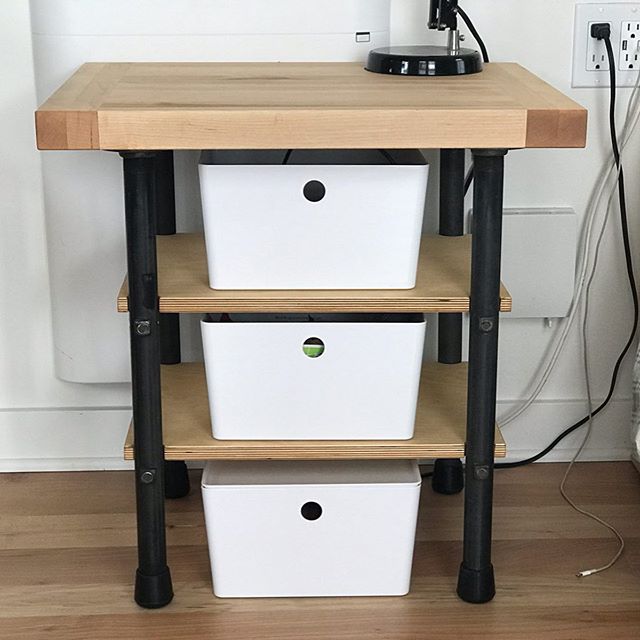 Finally got some decent light to photograph the new coffee/end table and the kitchen remodel.The coffee table is built out of three-quarter inch birch ply with a hard maple top that we made out of the last remnant of our countertops. It’s built around the Kuggis bins from Ikea which look sharp and provide...